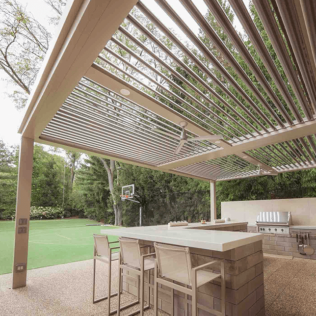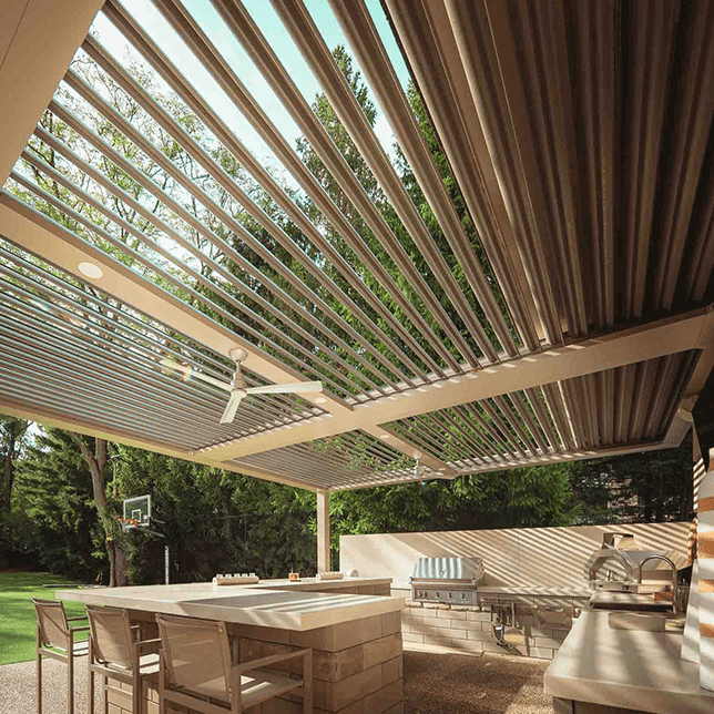 A sophisticated, adaptable roof covering to complete the ultimate backyard entertainment destination.